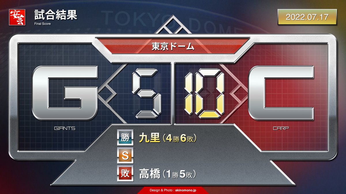 【試合結果】巨人5-10広島(17日・東京D)/3試合連続満塁弾。中京大中京高出身トリオが躍動
