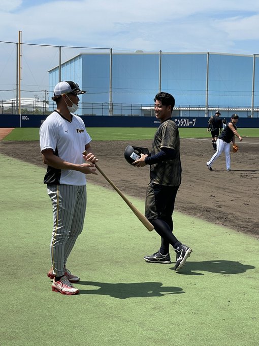 タイガースの糸井選手が舞洲にいるということで、古巣バファローズのコーチや選手たちとの会話が弾んでいました🤗
