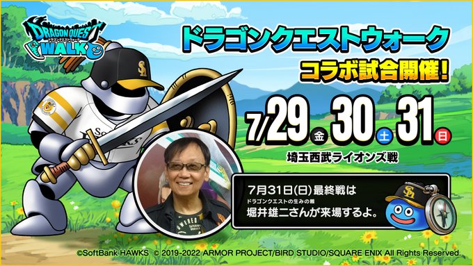 パ・リーグ6球団コラボ試合最終戦(7/31)に堀井雄二さんの来場が決定しました。