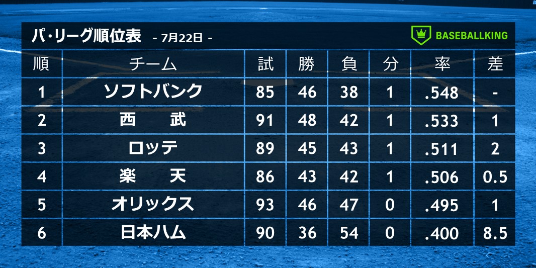 📈パ・リーグ順位表📉