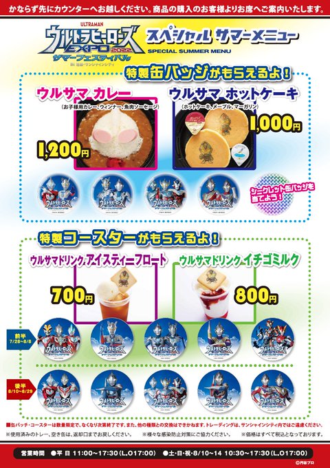 ウルトラマンデパートでは、限定品や先行商品などご用意してお待ちしております!!税込1500円ごとのお買い物で缶バッジもプレゼント! pic.twitter.com/vTWmuNAffu