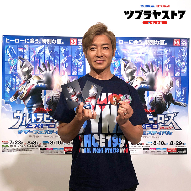 「#ウルトラヒーローズEXPO 2022 サマーフェスティバル IN 池袋・サンシャインシティ」アンバサダーを務める #つるの剛士(@takeshi_tsuruno)さんが手にしているのは本日発売の #ウルトラマンダイナ のブロマイドとランダム缶バッジです✨
