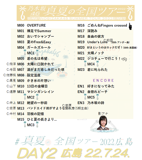 乃木坂46まとめ 1/46 : 2日目のセトリが明らかに!!!『真夏の全国ツアー2022@広島グリーンアリーナ 2日目』セットリスト&レポートまとめ!!!【#真夏の全国ツアー2022 】【#真夏の全国ツアー2022広島 】 #乃木坂46 #櫻坂46 #日向坂46