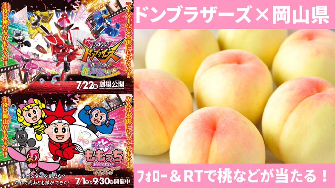 #暴太郎戦隊ドンブラザーズ×岡山県コラボ記念で本物の桃🍑が当たる祭りじゃ祭りじゃ‼️