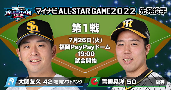 予告先発投手はパ・リーグ:大関友久(福岡ソフトバンク)、セ・リーグ:青柳晃洋(阪神)