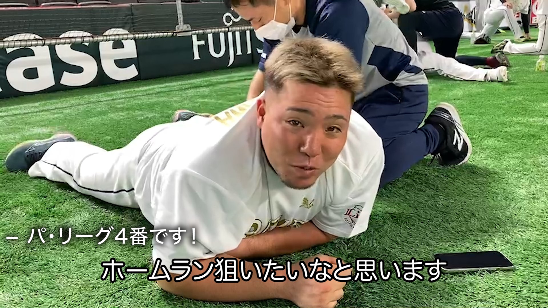 ストレッチ中に意気込み聞きました!豪快なホームランを今夜、福岡で見せてください!