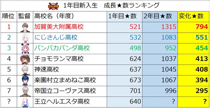 各高校の1年目新入生が、2年目4月までにどれだけ成長したかを★数でカウントしたランキングを公開します!