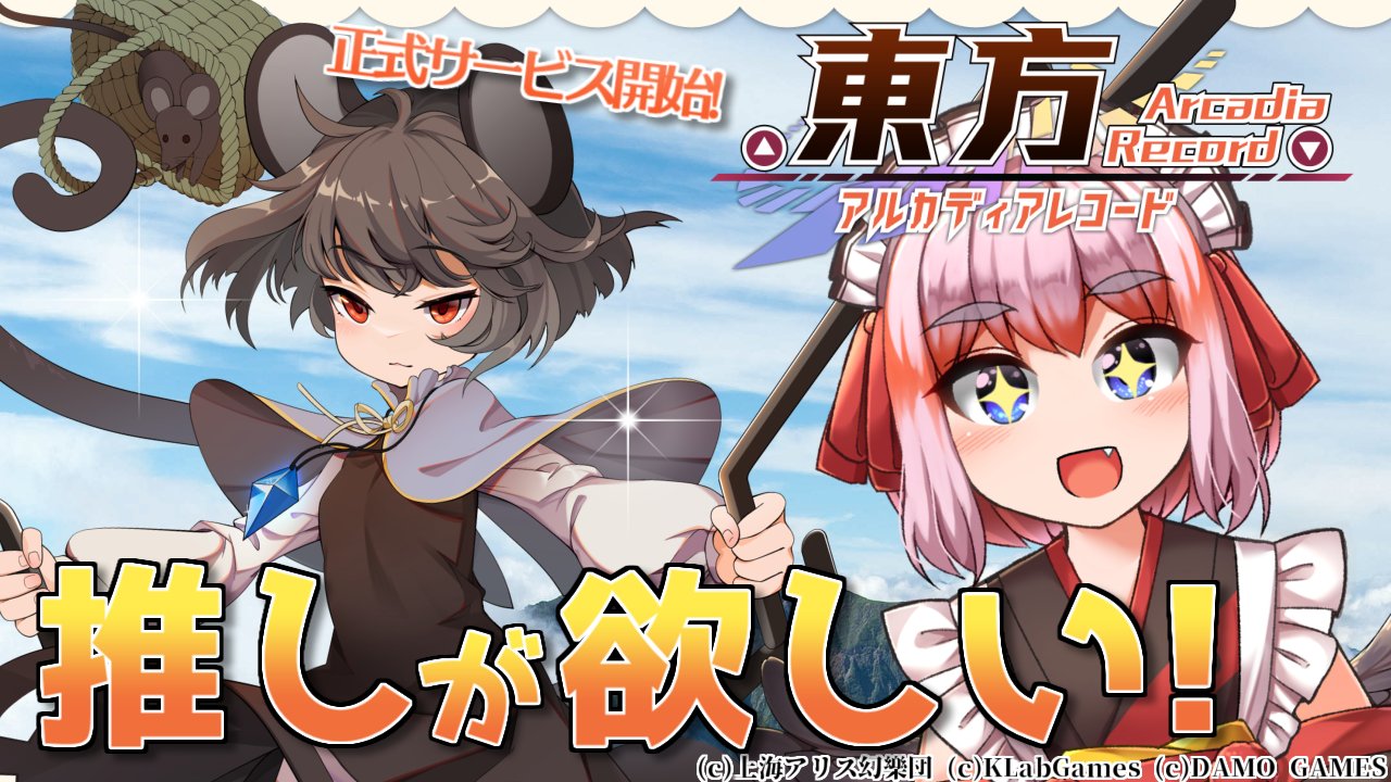 そしてアプリ #東方アルカディアレコード は12時スタート予定だから コチラもチェックしてくれよなっ✨