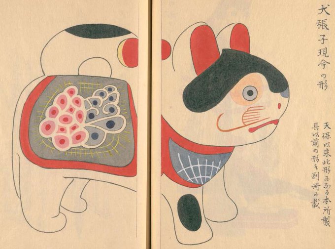 画像は江戸時代に各地の寺社で売られたお土産品たち。すすきのみみずくや犬張子など、素朴ながら可愛いです😌