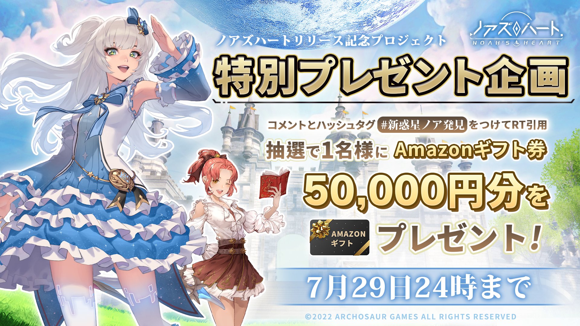 「ノアズハート」での冒険スクリーンショットをつけて参加した方からさらに抽選で2名様に現金50,000円を贈呈💴