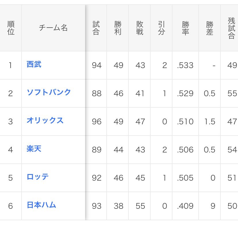 これで2位と0.5ゲーム差