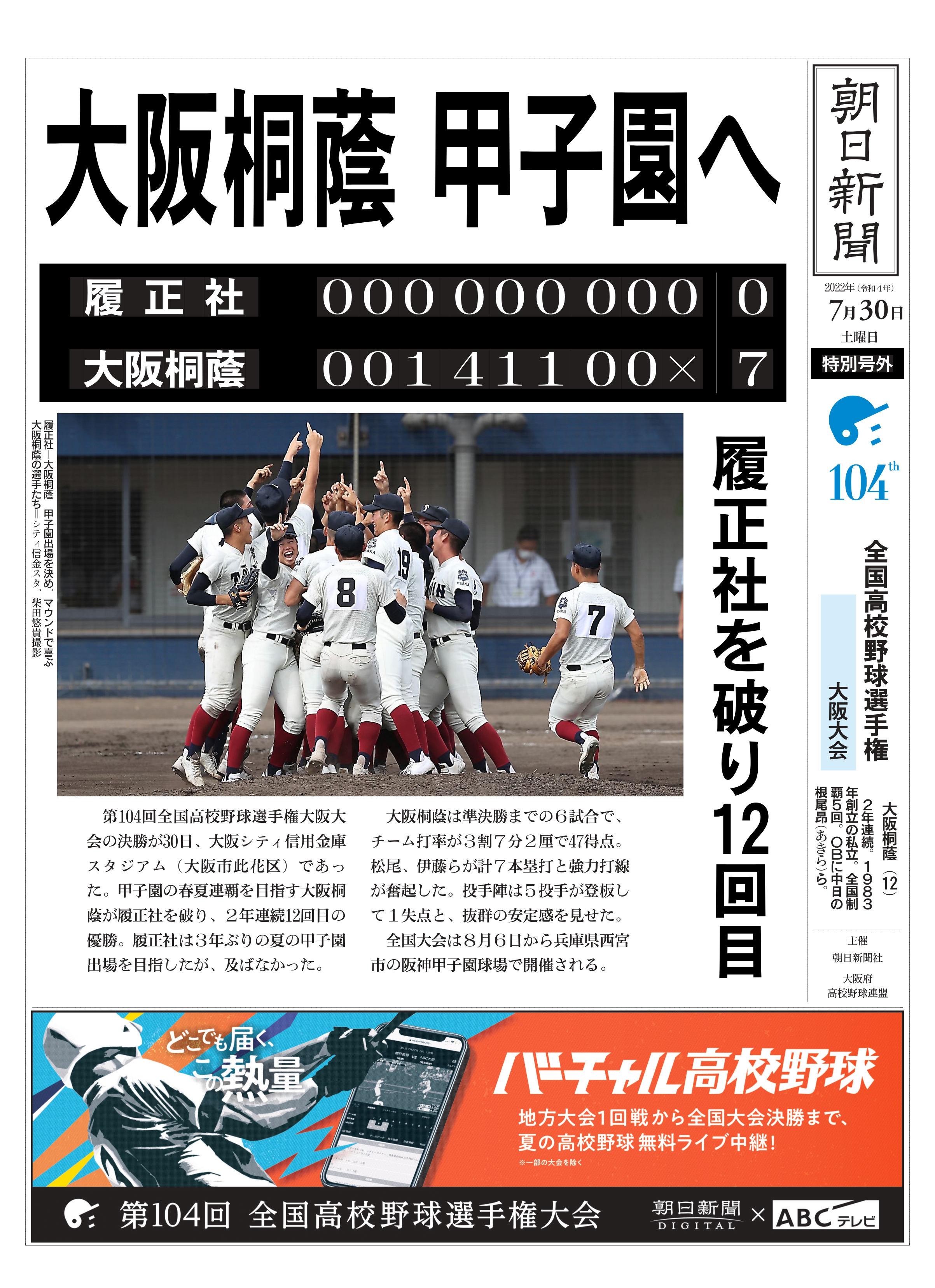 【号外】大阪桐蔭が大阪大会優勝👑甲子園出場