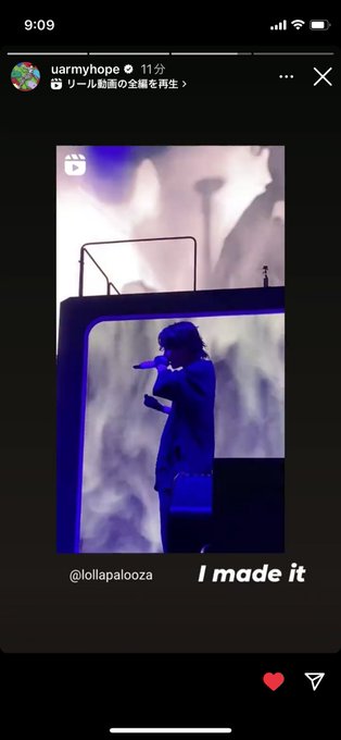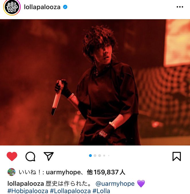 一つ目はlollapalooza公式のリポストです❤️🔥ホビ、やりきりましたね🥹