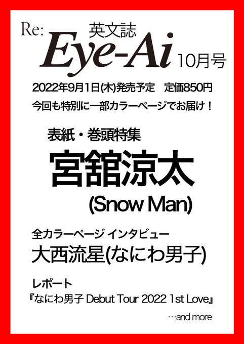 先程の2022/9/1発売Eye-Ai10月号(#宮舘涼太/Snow Man 単独表紙)の情報解禁後、書泉グランデ オンラインショップでの販売が終了し、お問い合わせをありがとうございます。