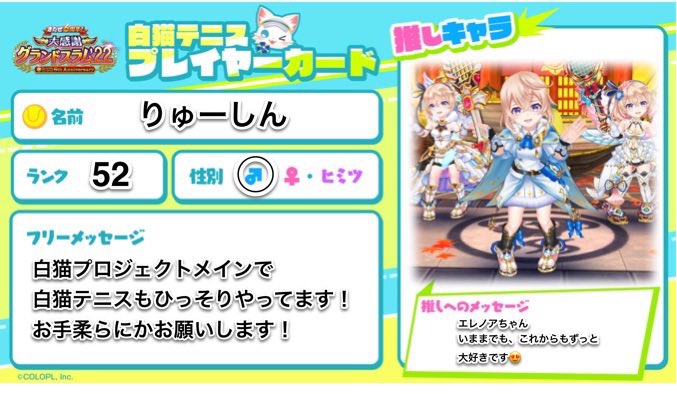 白猫テニスプレイヤーカード