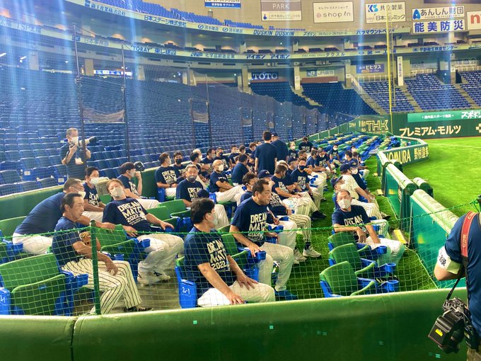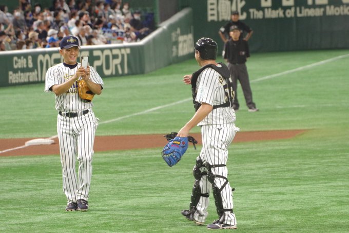 ホームラン打たれて謎に並走する岩ちゃんwwwほんま謎www #サントリードリームマッチ2022 pic.twitter.com/AEUYnZddxJ
