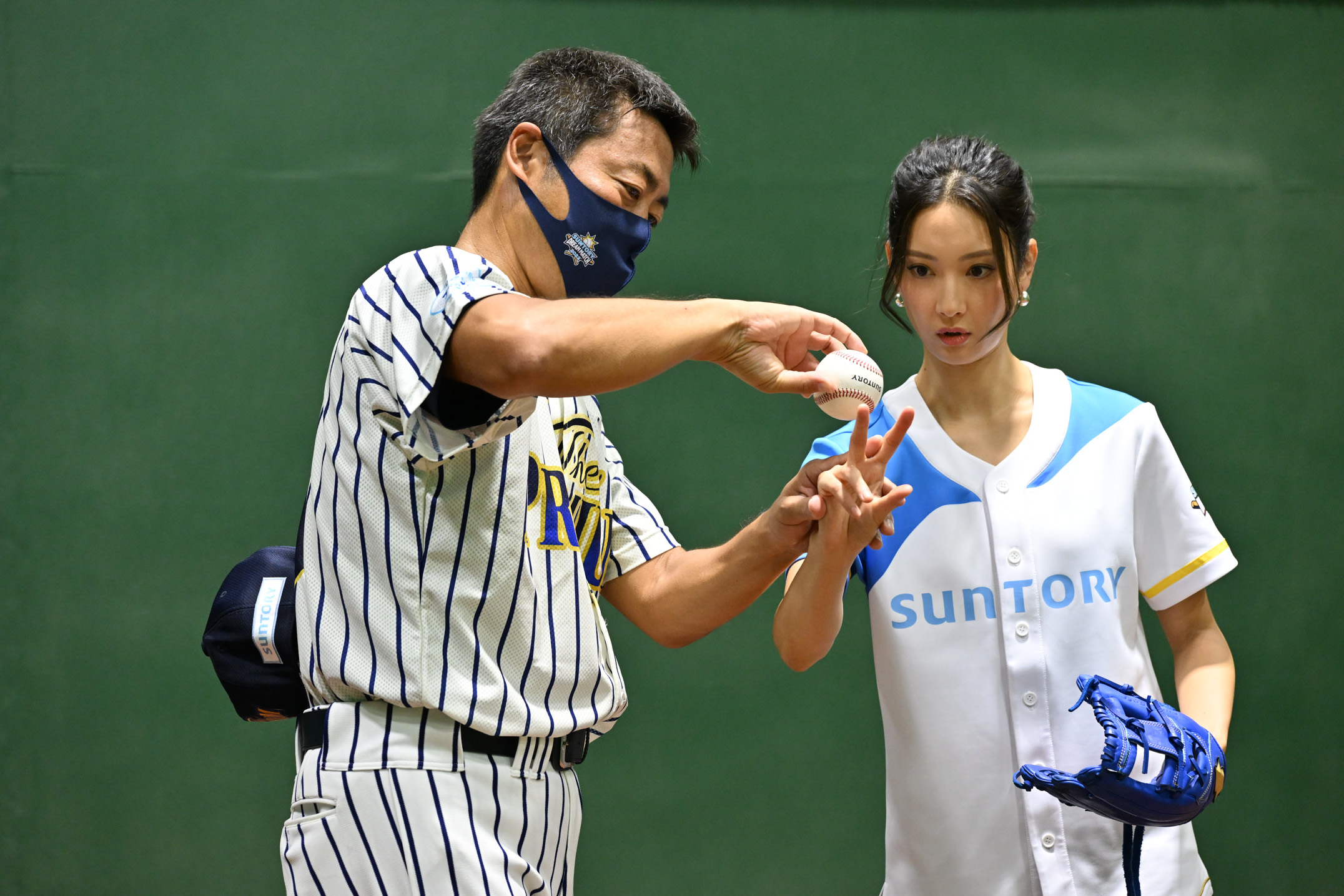 始球式で10頭身美ボディ投法に“敦也(菜々緒)ポーズ”で対抗 『サントリードリームマッチ2022』