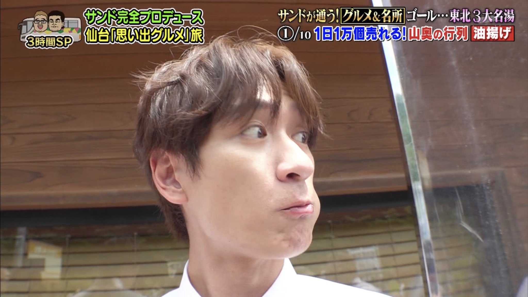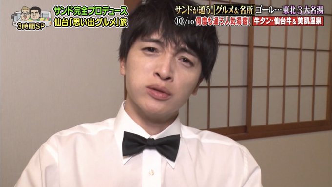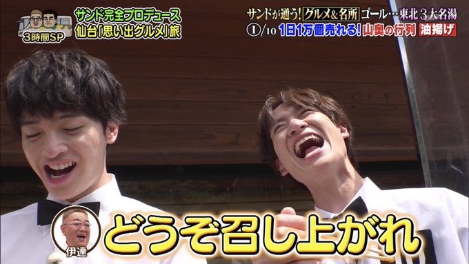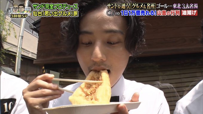 「ウマイ!」の表情を逃すまいとキスマイに限界まで近づくカメラさん、旅行だからなのか一般的な食レポの場合より距離感バグっててドアップ連続で最高なのよ #10万円でできるかな #十万円でできるかな #サンドキスマイ旅