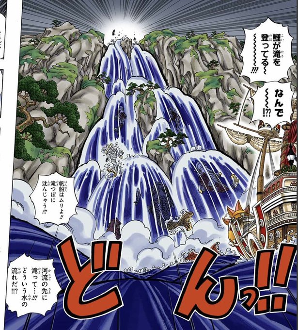近海(深場)で成魚となった鯉達が〝浅瀬〟を求めてワノ国の滝を登っていた所だった