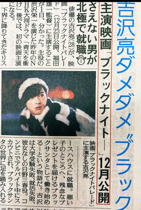 吉沢が福田雄一監督『#ブラックナイトパレード 』にて主演を務めさせて頂くこととなりました‼️ステキなキャストの皆様と暑い熱い夏を過ごした吉沢🎅お久しぶりの福田組でイキイキとしていました。今年のクリスマスも吉沢と過ごしてくださいね🎄どんなクリスマスになるかは、12月23日をお楽しみに😊✨ pic.twitter.com/0HmV0s6GIU
