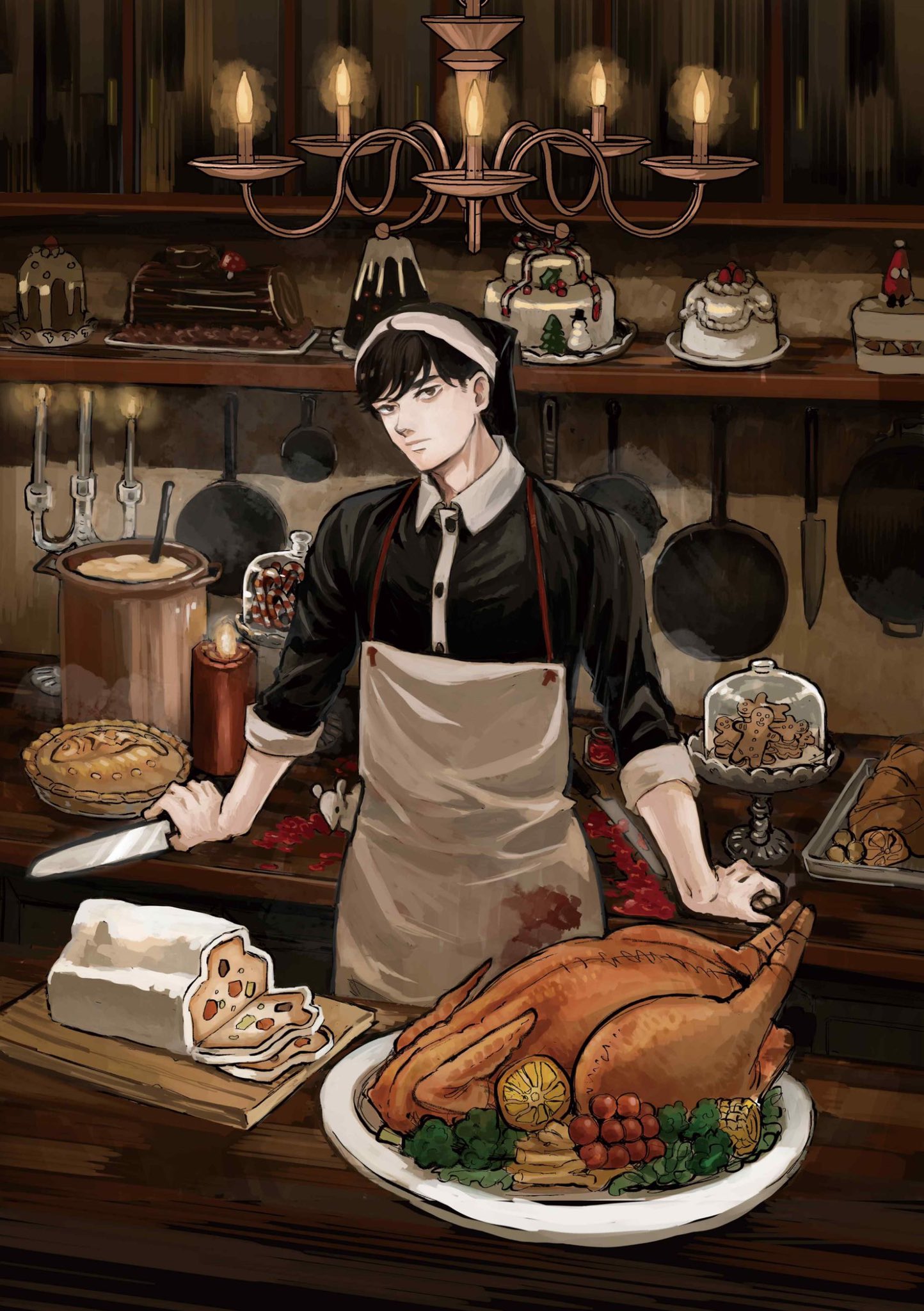 黒いサンタクロースの一員として働くイケメンの青年。