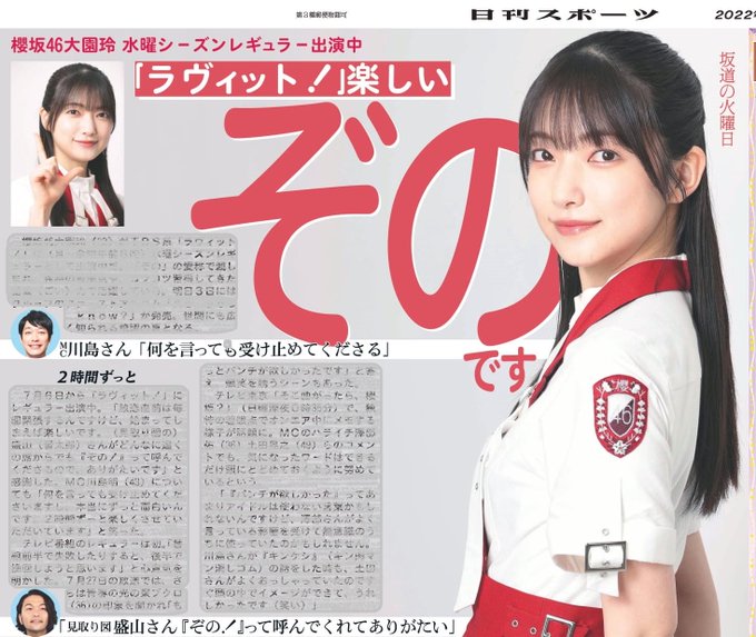 今日2日(火)の日刊スポーツ連載「坂道の火曜日」は櫻坂46大園玲さんが初登場です!