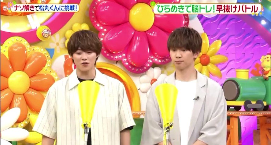 謎解きコーナーで一番最初に解けた時と、松丸くんに「知念くん(謎解くの)早すぎだよ!」って言われた時の知念くん、ほんとに嬉しそうな顔しててかわいすぎた