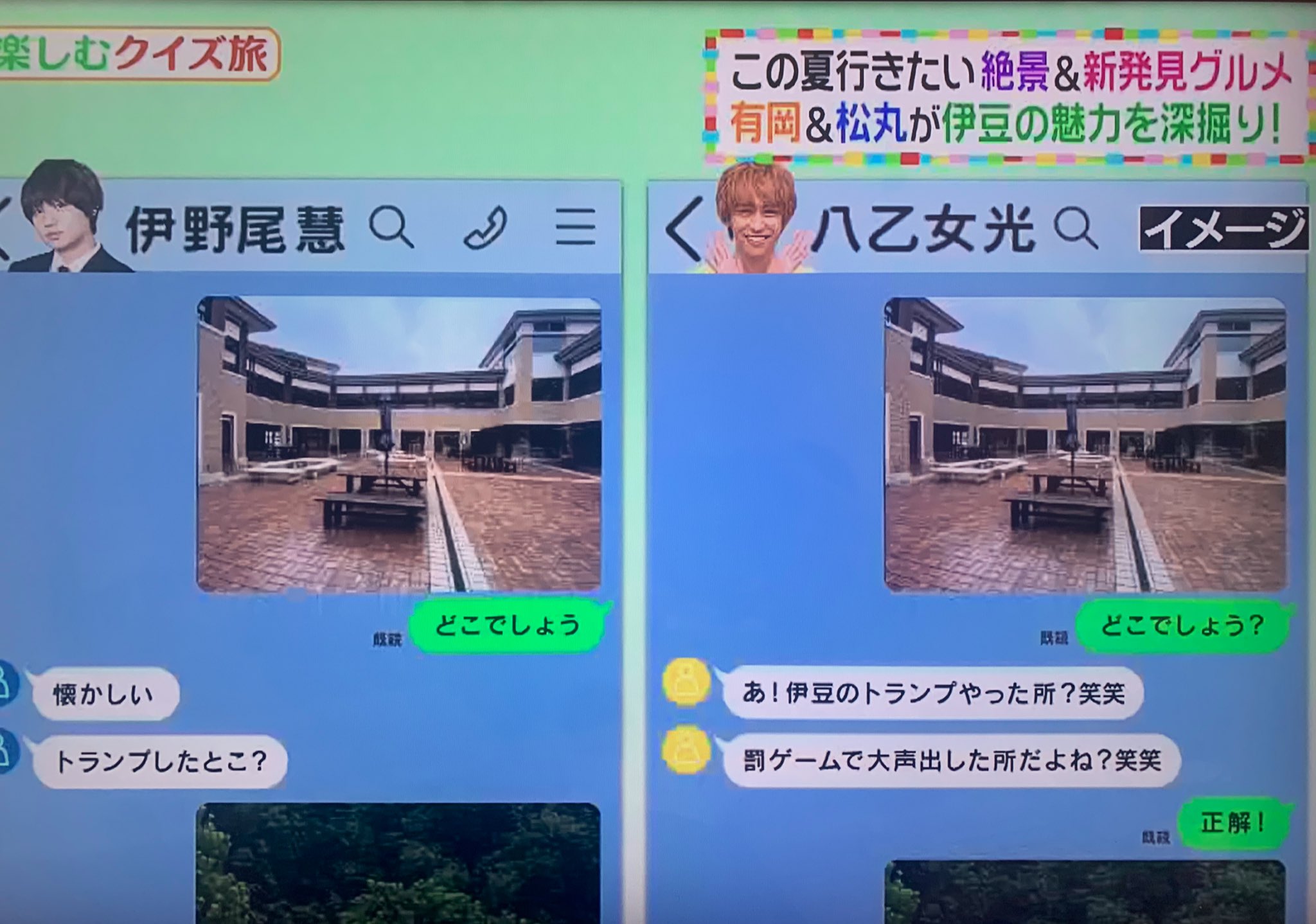 伊豆ロケで、ずっこけ思い出の場所を「(・д・)伊野尾と八乙女にすぐ写真送りました」という有岡くんにグッとくるし、イメージ的には、いのひかどちらからも正解の返信きたっぽくてさらにグッとくる。1つ1つ大切な思い出を共有してるJUMPの関係性がたまらなく好き