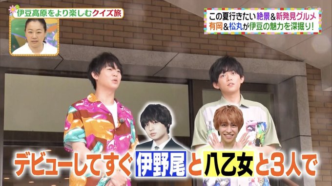 ▼デヴィ夫人と銀座でお得な一番探し▼有岡くん松丸くんコンビで夏の伊豆高原で絶景旅▼なにわ男子も挑戦!夏休みナゾ解きSP▼ゲスト:知念侑李、大橋和也・藤原丈一郎、松丸亮吾、デヴィ夫人(VTR)