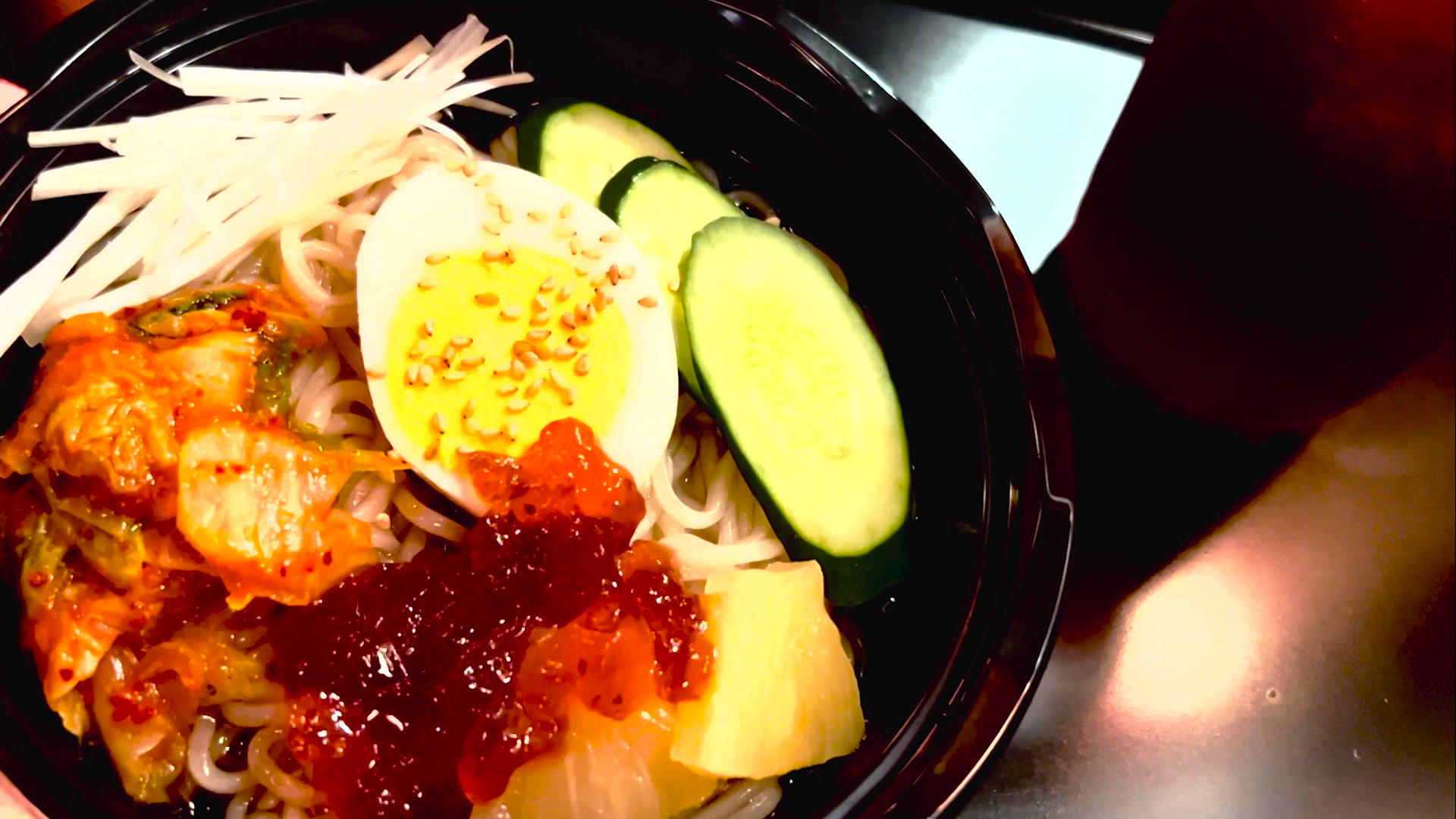 輪ゴムのような弾力の麺と苺ジャムは、口の中でしっかり喧嘩する