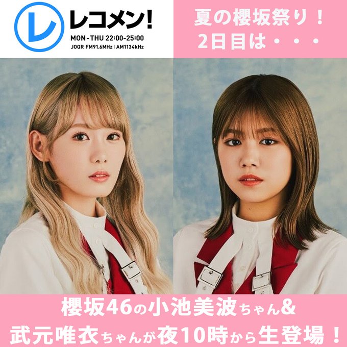 この後、22:00頃〜文化放送「レコメン!」生放送に小池美波と武元唯衣が出演致します📻
