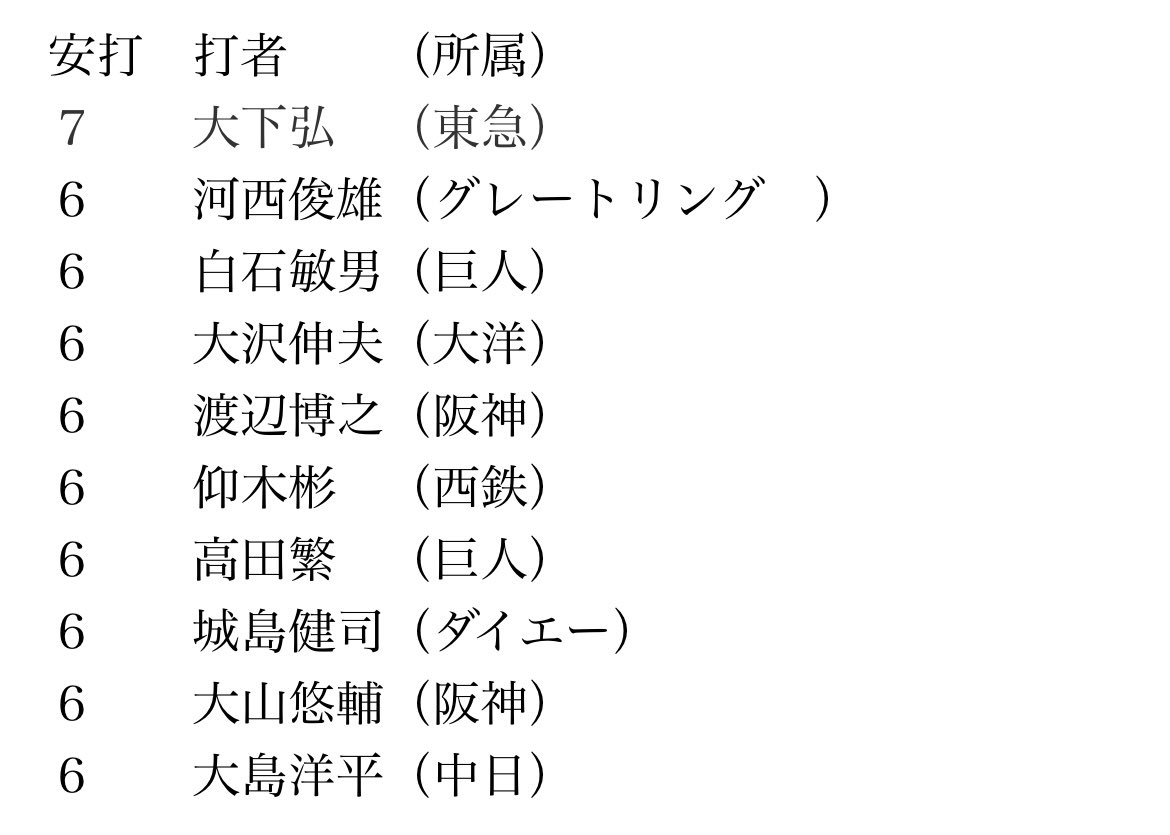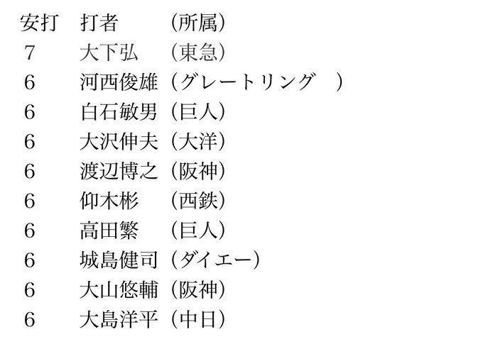 #大島洋平 [2022年8月3日(水)] 2022年8月3日(水)22:00当ページのリンクには広告を含む場合があります 2022年8月4日(木) 22:10 更新 東スポ 中日ドラゴンズ取材班 @tospo_dragons 試合前の練習風景2022.08.03ティー打撃する #大島洋平 選手#dragons#中日ドラゴンズ#ヤクルト戦#神宮球場 pic.twitter.com/LUb7KQwFDh 表 洋介(スポーツ報知・プロ野球遊軍) @hochi_yugunomo 220803神宮#大島洋平 選手!#dragons pic.twitter.com/aXeNpCD948 🐙はた子🐙 @hataco08 師弟コンビでドラゴンズを引っ張って欲しいです☺️3日は #高橋周平 選手#8月は大島さん月間#大島洋平 選手 pic.twitter.com/TD4N5vxVZQ 中日新聞写真部 @chunichiphoto 【ドラゴンズ】5回に4本目のヒットを放つ大島選手😲#大島洋平 #中日新聞 #中日スポーツ pic.twitter.com/E99EAkYbUi 中日新聞写真部 @chunichiphoto 【ドラゴンズ】7回、大島選手5安打目#大島洋平 #中日新聞 #中日スポーツ pic.twitter.com/fU3dxc5RDy 名空一宮 @Mizowaki_is_god 大島プロ、セリーグ他5球団から全て打率.300超え達成#大島洋平#dragons pic.twitter.com/1sf8gkKVS5 東スポ 中日ドラゴンズ取材班 @tospo_dragons 【コメント】 2022.08.03#大島洋平 選手7回二死二塁で左翼へタイムリー「打ったのはシュート。ランナーを還せて良かったです」#dragons#中日ドラゴンズ #ヤクルト戦#神宮球場 ニッポン放送ショウアップナイター【公式】 @showup1242 【#ヤクルト 対 #中日 】9回表 中日 #大島洋平 はライト前ヒットを放ち、これで今日6打数6安打!1試合6安打は中日では初、セリーグでは5人目の記録。S9-7D(9回表攻撃中)#swallows #スワローズ #中日ドラゴンズ #dragons#ニッポン放送 #ショウアップナイター せいちゃん@データで楽しむプロ野球 @baseballdata #大島洋平 さん1試合6安打は2018年09月16日の阪神 #大山悠輔 さん以来4年振り#dragons 表 洋介(スポーツ報知・プロ野球遊軍) @hochi_yugunomo 220803神宮1試合安打記録#大島洋平 選手、セ・リーグタイ記録👏 pic.twitter.com/N7hW5XESi2 スポーツ報知 @SportsHochi 【 #中日 】 #大島洋平 、1試合6安打!セ・リーグタイ記録!球団史上初の快挙 なおドラゴンズは… hochi.news/articles/20220… #野球 #baseball pic.twitter.com/j1E8SSQ2Nb しょあ @help_pone 【竜の安打製造機】26歳の大島プロと36歳の大島プロ。衰え知らずとはこのこと。#中日ドラゴンズ #dragons #大島洋平 pic.twitter.com/jFoSTeD75R 中日新聞写真部 @chunichiphoto 【ドラゴンズ】9回に右前打を放つ大島選手。今日は6打数6安打の活躍でした👏#大島洋平 #中日新聞 #中日スポーツ pic.twitter.com/vkg9nExLhn 東スポ 中日ドラゴンズ取材班 @tospo_dragons 【コメント】 2022.08.03#大島洋平 選手球団史上初6安打をマーク、打率3割2分9厘でDeNA #佐野恵太 選手を抜きリーグトップに躍り出る「トップに立ったことは良いですが、そのことについてはシーズンが終わってから考えたいです。それより明日勝てるようにまた頑張ります」#dragons#中日ドラゴンズ カネナシオペラクン @KanenashiOpera_ 大島プロの6打数6安打 #熱盛 キターーー!セリーグ タイ記録!😁#大島洋平 #中日ドラゴンズ #報ステ #プロ野球 pic.twitter.com/JJ6jV1lXI7 日刊スポーツ @nikkansports 【中日】大島洋平セ・リーグタイ6打数6安打 6安打以上で敗れたのはプロ野球史上初#dragons #中日 #大島洋平nikkansports.com/baseball/news/… 表 洋介(スポーツ報知・プロ野球遊軍) @hochi_yugunomo 220804神宮雲行きはめちゃくちゃ怪しいですが、屋外で練習が始まりました。照明がついて、打撃ケージも用意されています!#大島洋平 選手 pic.twitter.com/Z052krnPIq 🐙はた子🐙 @hataco08 駒大の先輩後輩コンビ☺️4日は #鵜飼航丞 選手#8月は大島さん月間#大島洋平 選手 pic.twitter.com/dVlhDDqeyD コメント名前 コメント 投稿する
