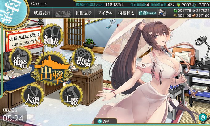 次期作戦に備え、艦隊「母港最大拡張枠」拡大を実施、同拡張により「艦娘」の最大運用隻数は、現在の540隻から【+艦娘10隻】拡張され、最大【550隻】の運用が可能となります。
