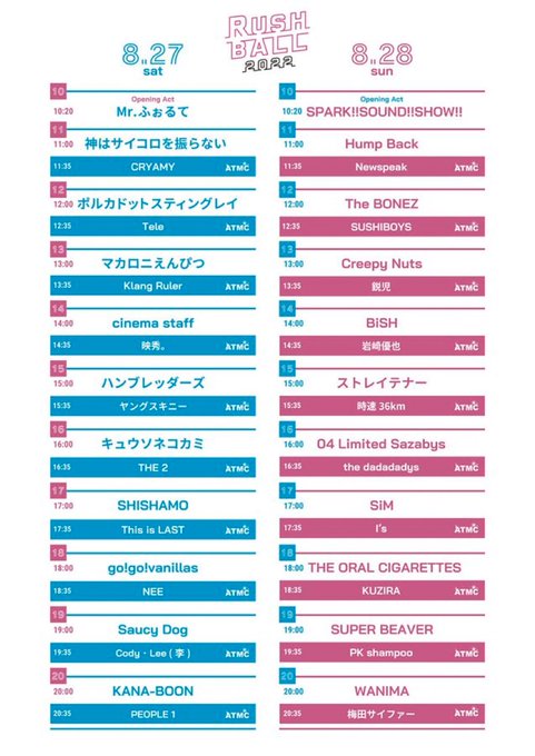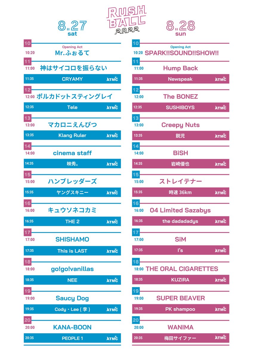 『RUSH BALL 2022』のタイムテーブルが公開となりました‼️