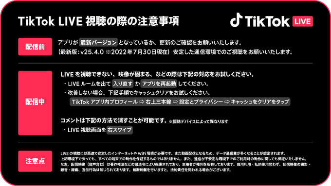 TikTok LIVE ご視聴の際の注意事項をまとめてみました! 事前にチェックして快適にLIVEをお楽しみくださいませ😉