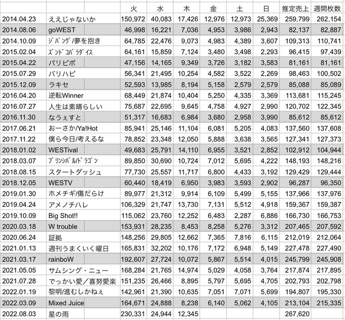 そして、ジャニーズWEST「星の雨」 初週ええじゃないか越えおめでとうございます🎉🎊