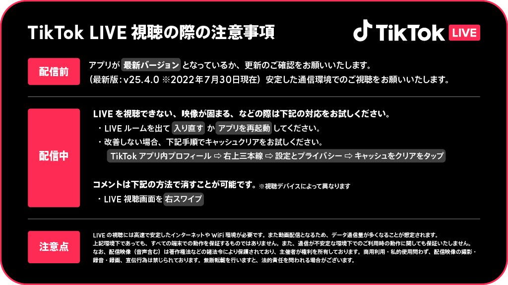 TikTok LIVE ご視聴の際の注意事項をまとめてみました! 事前にチェックして快適にLIVEをお楽しみくださいませ😉