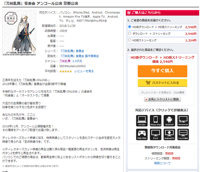 でも、近侍別に買えて、しかも視聴期限無期限で3000円でお釣りが来ます(バグか?)