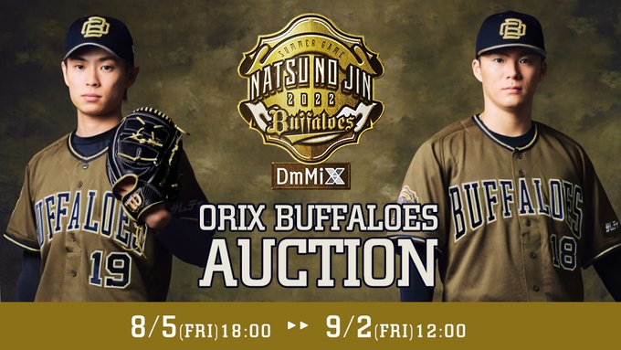 本日8月5日18:00より「Bs夏の陣2022 supported by DmMiX」で選手が着用する【Bs夏の陣2022】特別ユニフォームや、練習で着用のTシャツ、イベント開催時に球場装飾で登場する「バナーフラッグ」「のぼり」のオークション入札受付を開始いたしました!