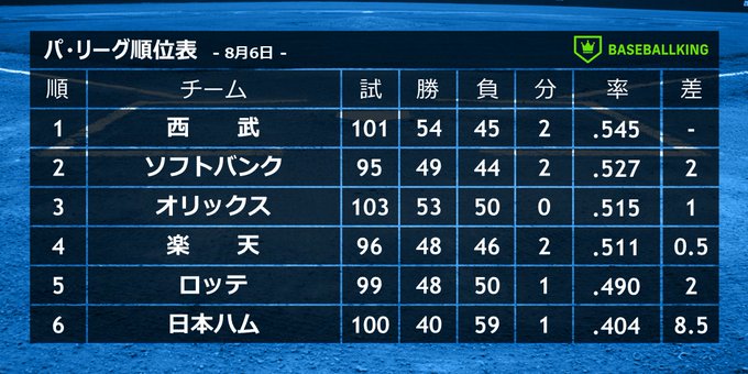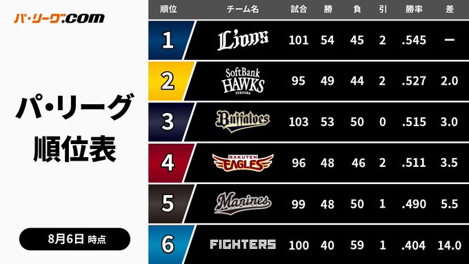 📈パ・リーグ順位表📉