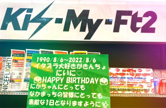 本日8月6日はKis-My-Ft2 がきんちょにかちゃん😎💚のお誕生日🎂にかちゃんオメデトウ💗グループ愛そしてメンバー愛に溢れているにかちゃんがダイスキデス。#二階堂高嗣 #にかちゃん🍈 #キスカゴ #タワレコキスマイ応援店 #カゴジャニ #タワジャニ pic.twitter.com/k2N9W9XjDo