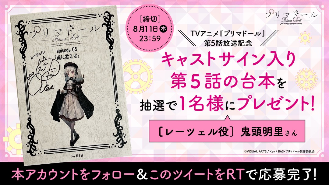 レーツェルを演じた 鬼頭明里さんの直筆サインが入った第5話の台本を1名様にプレゼント✨