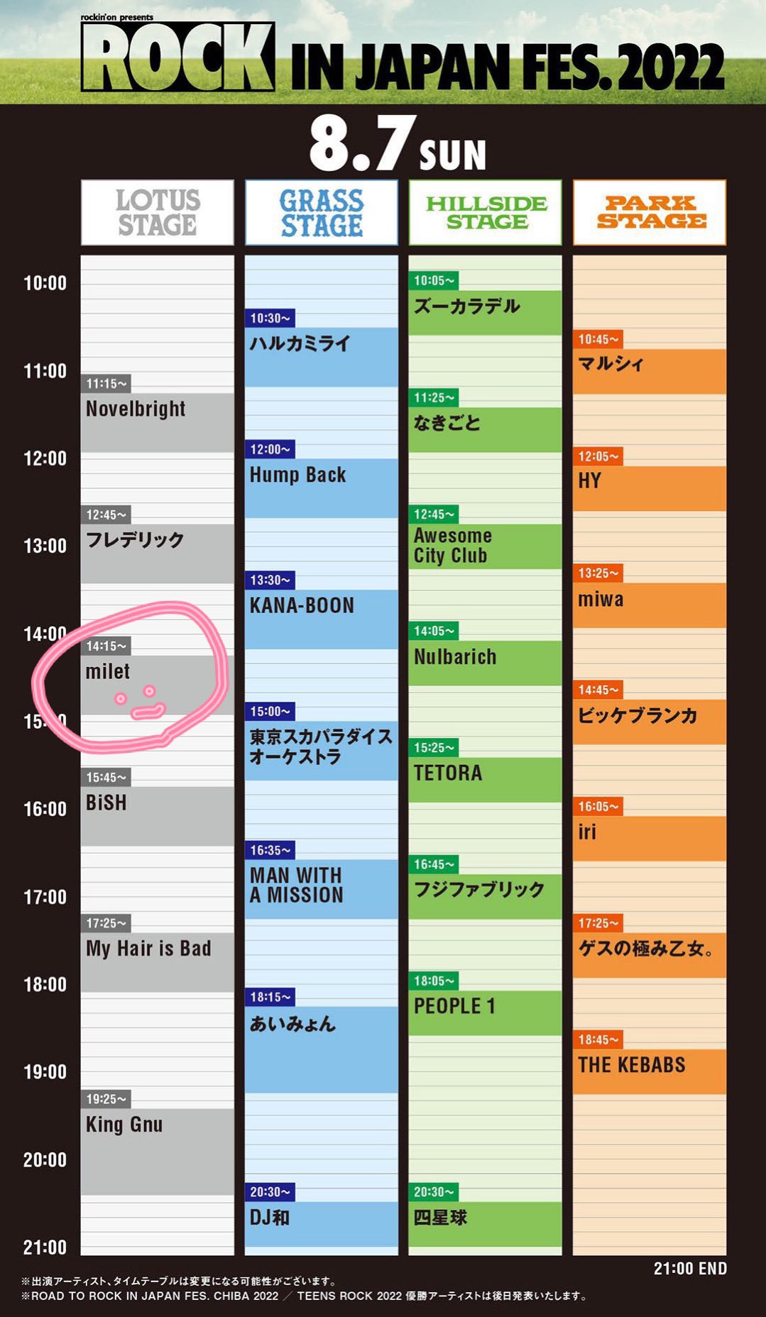 本日のライブは「rockin’on presents ROCK IN JAPAN FESTIVAL 2022」@ 千葉市蘇我スポーツ公園です。