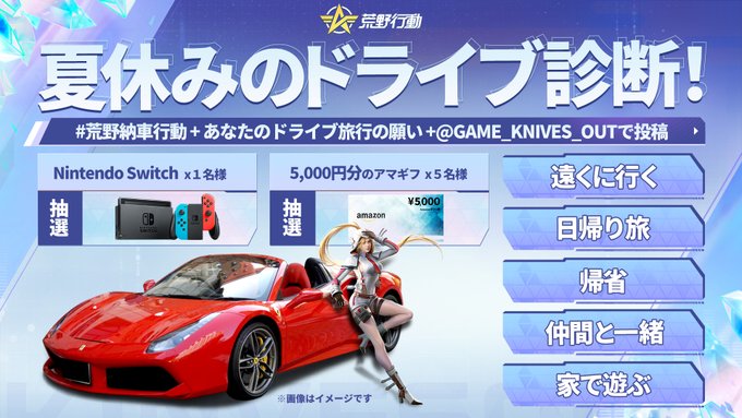 #荒野納車行動 + あなたのドライブ旅行の願い +@GAME_KNIVES_OUTで投稿