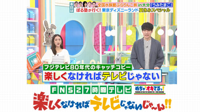 わざわざ2004年の27時間テレビタイトルロゴ準拠のフォントカラーで「楽しくなければテレビじゃない」と表示する徹底ぶり #ラヴィット pic.twitter.com/fFW6NI72Wd
