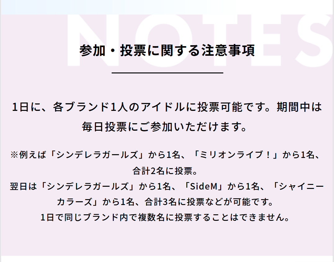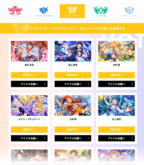 #ミリオンライブ #シンデレラガールズ など各ブランドから1人ずつ、1日1回投票可能!!