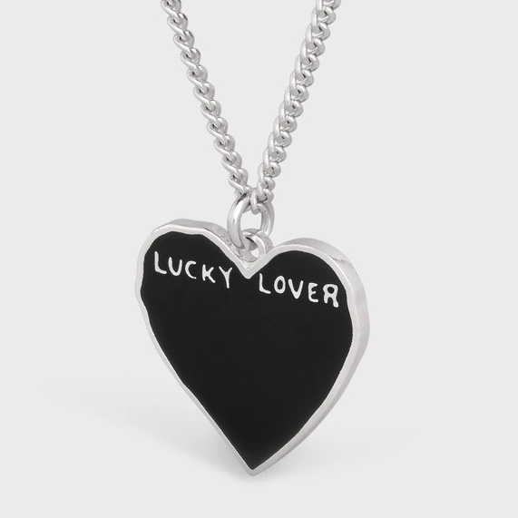 事前に基礎力テストを受けていた時に着けていたネックレスは CELINE(セリーヌ)。黒いハートに白い文字がお洒落♥️