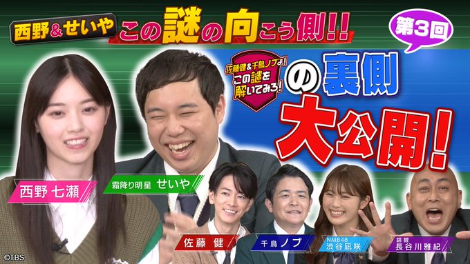 #健ノブ謎解き #佐藤健 #千鳥ノブ #せいや #西野七瀬 #長谷川雅紀 #渋谷凪咲 #有岡大貴