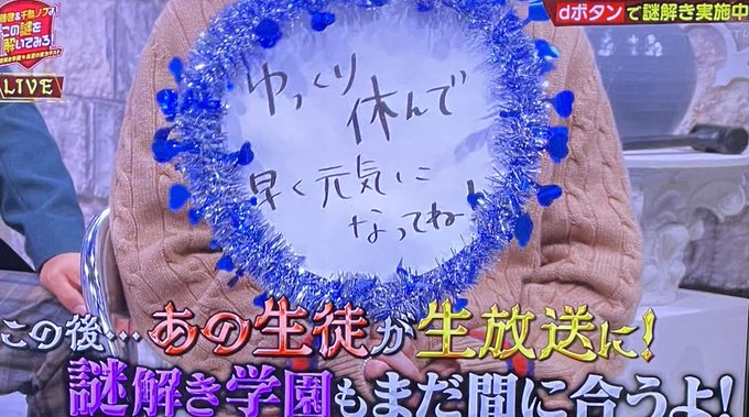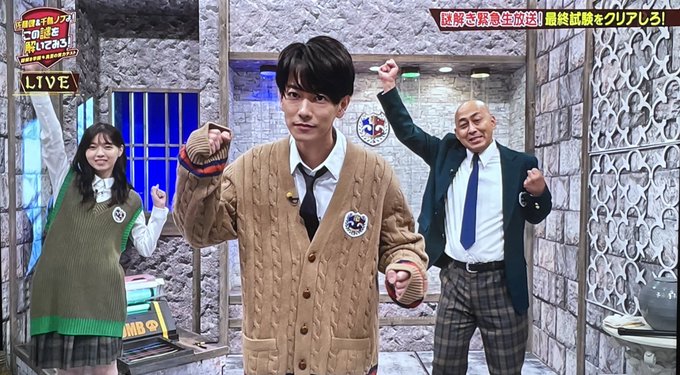 ちなみに生放送ブロックは4日前に3回、今日5回のリハーサルで修正を重ねに重ねて仕上げました。制作チームや美術チームに感謝です! #健ノブ謎解き