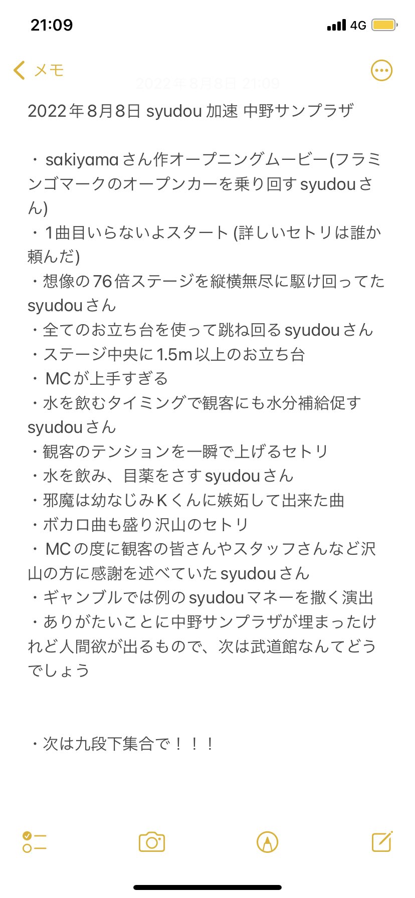 syudou Live 2022「加速」@中野サンプラザ終了